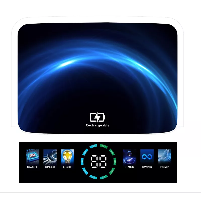 Напајан соларном енергијом, пуњиви вентилатор за испаравање ваздуха упија сунчеву светлост током дана да би напунио уграђену батерију, што га чини еколошки прихватљивим и штедљивим. Са дуготрајном батеријом, испоручује 4-14 сати непрекидног хлађења (у зависности од брзине вентилатора), тако да можете да победите врућину цео дан без "небриге о снази".